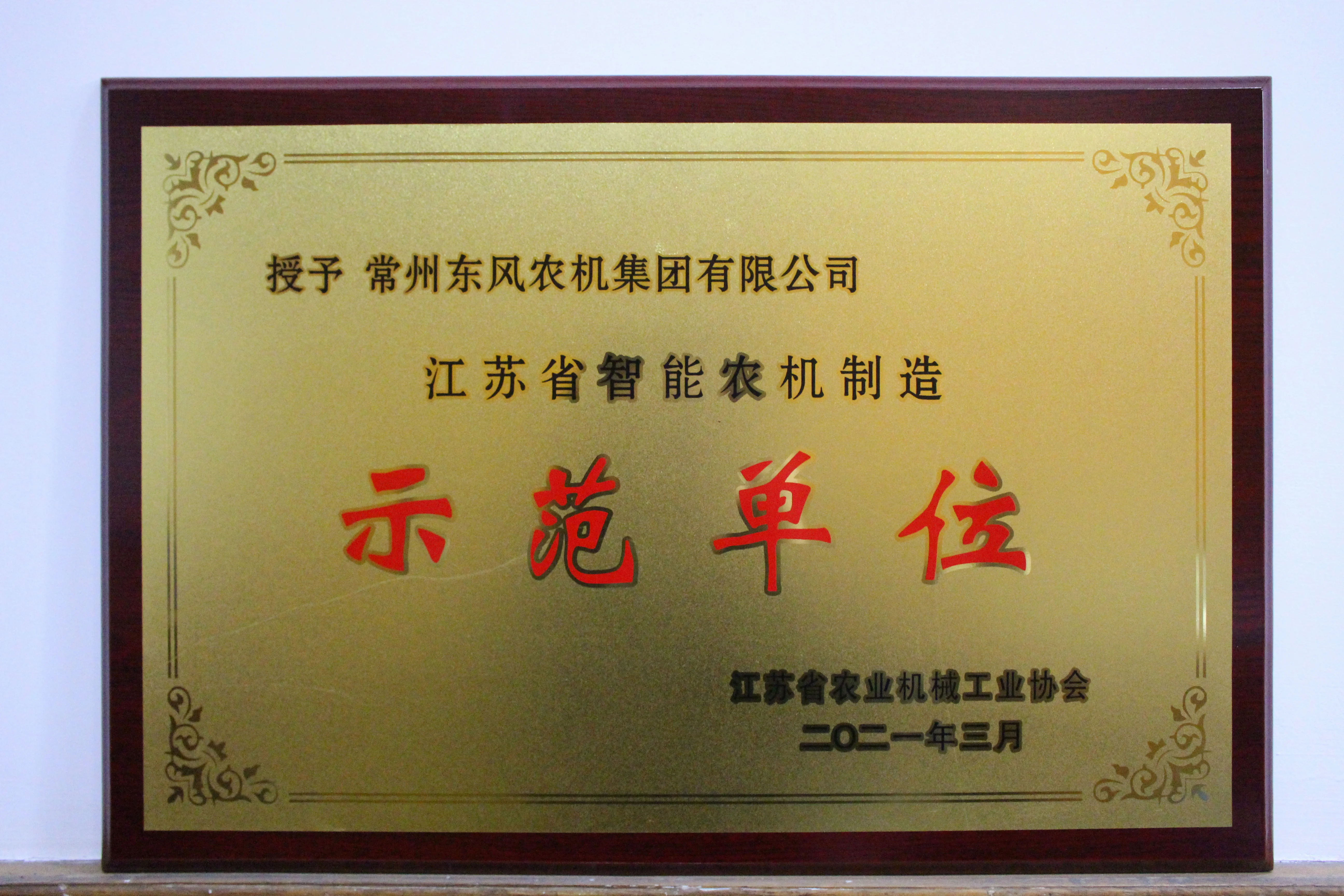 为积极推江苏省农机装备产业的转型升级,全面提升江苏省智能农机制造水平,激励更多农机制造企业努力赶超国内外先进智能农机制造技术,协会在全省农机行业开展了江苏省智能农机制造示范单位的申报评选工作。经企业申报专家评审,共遴选出20家江苏省智能农机制造示范企业。东风农机荣获“江苏省智能农机制造示范单位”殊荣。