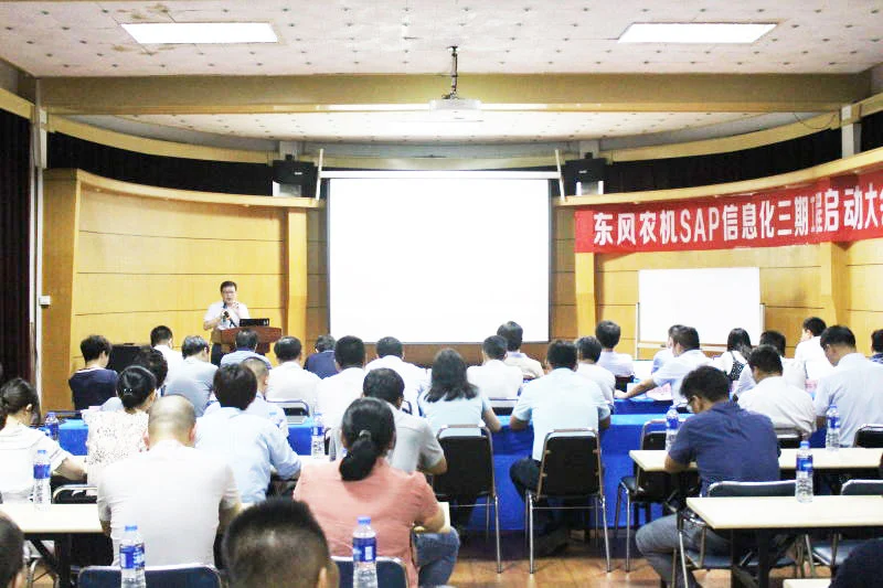 东风农机SAP信息化三期工程启动大会召开 2019-09-137月31日,东风农机集团信息化三期暨SAP优化项目启动大会在厂办一楼会议室召开。东风农机财务管理部部长、SAP项目总监赵鹏飞主持本次会议,东风农机董事长宣碧华、各事业部、职能部门相关负责人及九慧项目相关人员参与会议。 启动大会上,由项目总监赵鹏飞介绍项目背景,九慧项目负责人对东风农机现状及展望做了阐述,并大致介绍本期项目运作。东风农机SAP优化项目,于7月29日启动,预计10月3日切换上线。最后,…了解详情 -