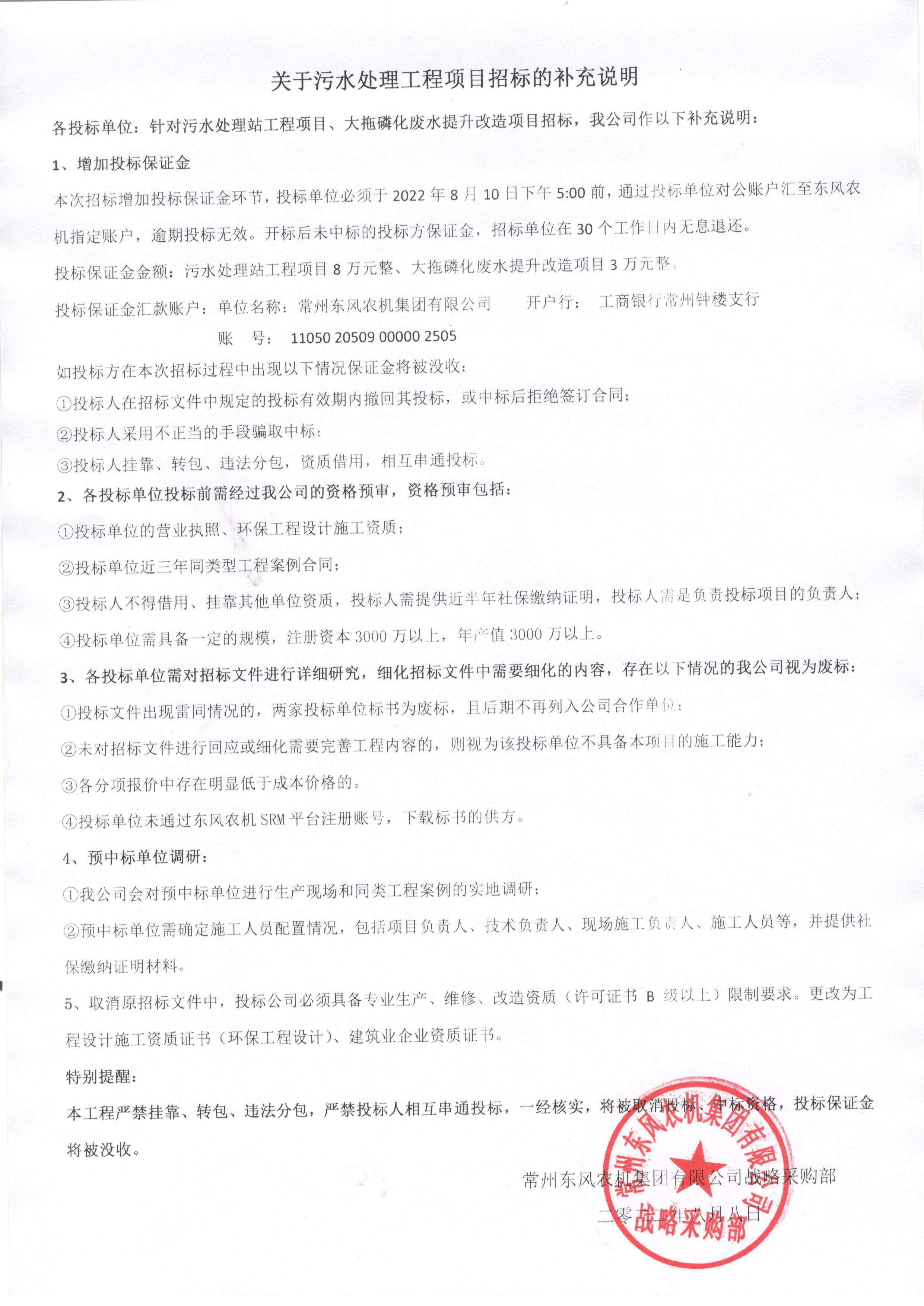 关于污水处理工程项目招标的补充说明 2022-08-08了解详情 -